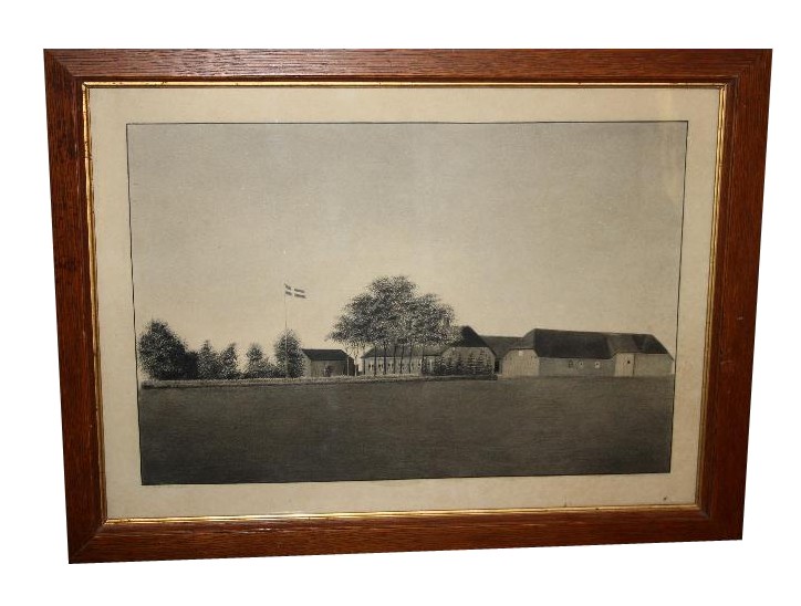 Billedet er af ejendommen på Vejlevej 68, Gundesbøl. Det er ikke et fotografi, men en tegning af Thomas Anton Jepsen Andersen ca.1900.